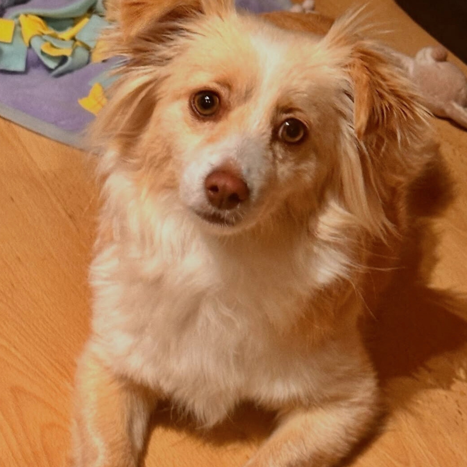 Jetzt braucht es wohl einfach Zeit. Wir gehen alle 2h raus (allein schon wegen Opi), haben aber sicherheitshalber unter der Decke Pippimatten platziert. Fernsehen findet sie meeeega spannend, ist aber ziemlich müde von der Fahrt… Was wir ihr noch zumuten müssen, ist ein erstes Bad, da sie sich ziemlich eingesaut hat in der Box. Montag ruf ich dann noch TA an, die Zollbeamtin meinte müsse sie noch umschreiben lassen und Schweizer Impfpass machen… Ach ja, aus Meli wurde Bonnie, weil meine Freundin Melanie heisst und Meli gerufen wird.