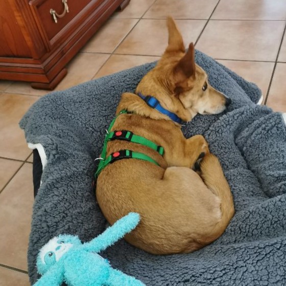 Im neuen Zuhause: 08.03.2025 Hallo Frau Scholzen, wir sind gut zu Hause angekommen. Mini hat bereits ihr großes Geschäft im Garten verrichtet und ich glaube sie kommt allmählich zur Ruhe. Sie ist am dösen. Ich werde Ihnen die nächsten Tage weiter berichten: 11.03.2025 Hallo liebe Frau Scholzen, Mini ist heute den 4. Tag bei uns. Sie ist sehr lieb. Sie macht vom ersten Tag an "ihre Geschäftchen" im Garten. Sie schläft die ganze Nacht durch und meldet sich nicht. Am Samstag und Sonntag waren wir mit Mini im Garten. Gestern und heute sind wir kleine Runden Gassi gegangen. Dabei hatte sie ein paar Kontakte mit anderen Hunden. Sie ist freundlich zu anderen Artgenossen, reagiert bei einigen Hunden mit ein bisschen Knurren und prescht dann nach vorne. Vielleicht ist es etwas Unsicherheit, vielleicht übertreibe auch ich etwas, weil ich Mini ja auch noch nicht kenne und nicht weiß, wie sie reagieren wird. Sie geht gut an der Leine. Sie ist sehr schlau und ich glaube man muss aufpassen, dass sie einem später nicht auf der Nase rumtanzt. Beim Verlassen aus der Haustier sträubt sie sich, dann versuche ich mit Leckerchen sie zu animieren, mit mir raus zu gehen. Das klappt dann auch nach einiger Zeit. Nach wie vor finden wir Mini super und sie ist uns schon ans Herz gewachsen. Ich melde mich Ende der Woche wieder bei Ihnen. Anbei noch zwei Bilder von Mini. Ihnen alles Gute bis dahin: 01.10.2025 Bei der Nachkontrolle war alles prima: