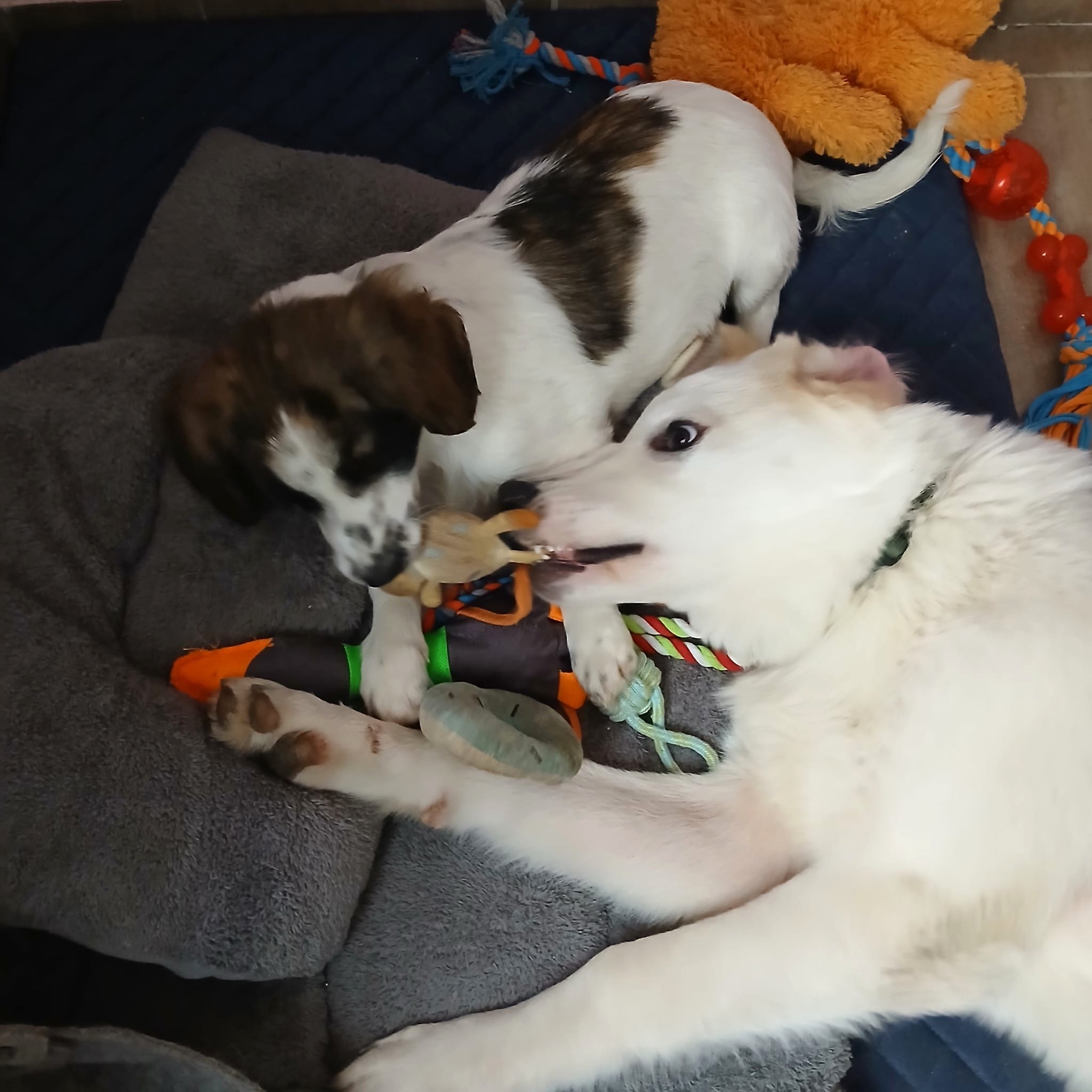 Snoopy wurde zusammen mit seinen Geschwistern Anny und Erina in der Nähe unseres Shelters bei einer Müllstelle gefunden. Thanasis fand sie dort und nahm sie alle mit in sein kleines Shelter.