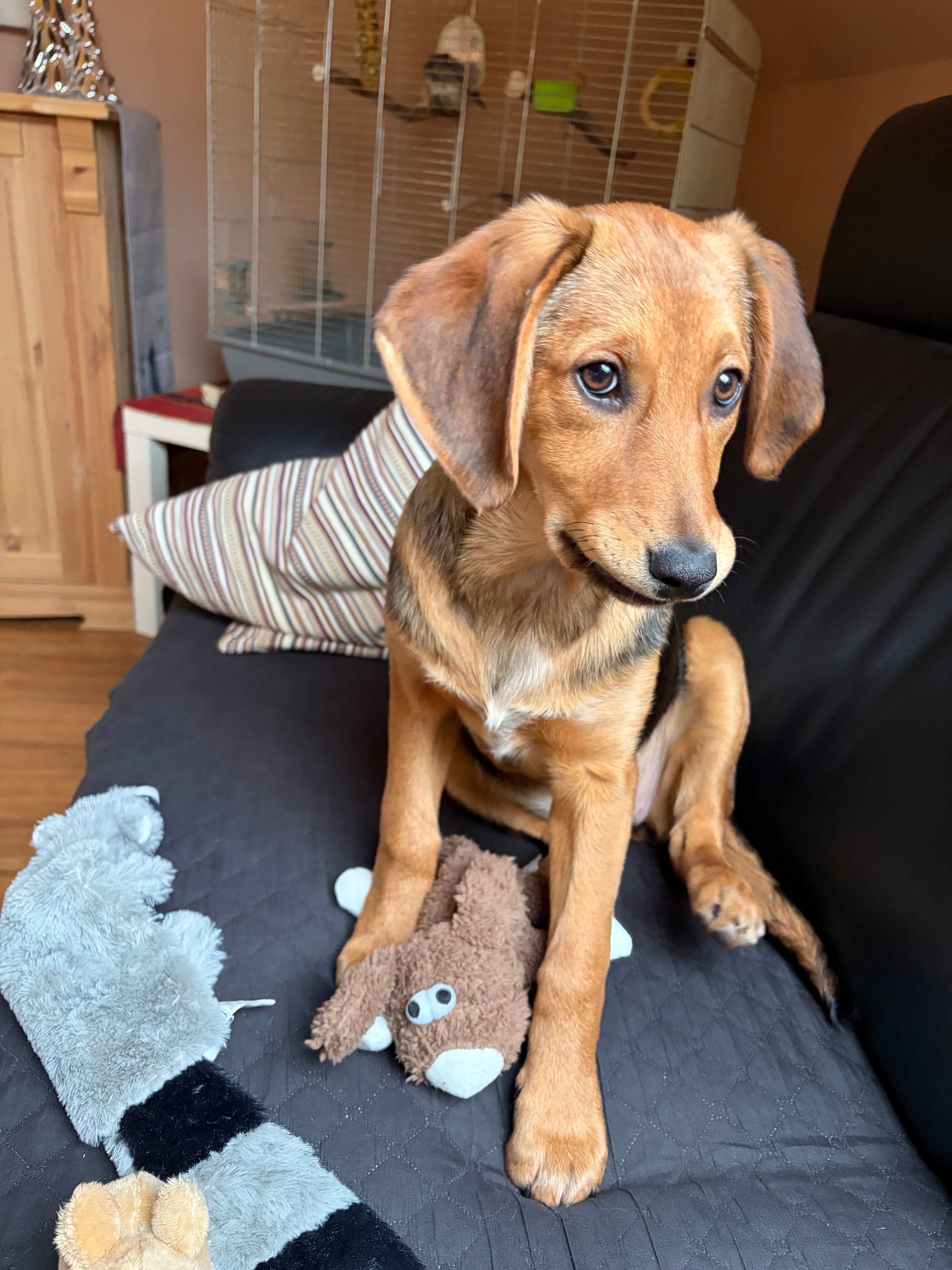 Stella Stella Einstelldatum: 04.01.2026 / Vermittelt: 31.01.2026 Geschlecht: weiblich Geburtsdatum: ca. 09/2025 Rasse: Mischling Aufenthaltsort: Griechenland / Karditsa Vorgeschichte: Stella wurde gemeinsam mit ihren zehn Geschwistern auf dem Platz unserer Tierschützerin Eleni geboren. Ihre Mama Lila wurde erst einige Tage vorher hochträchtig auf der Straße gefunden und rechtzeitig in Sicherheit gebracht, sodass die Welpen wenige Tage später geschützt zur Welt kommen konnten. Dank dieser schnellen Hilfe konnten alle elf Welpen behütet bei ihrer Mama aufwachsen und sich gesund entwickeln. Zwei der Welpen konnten bereits in Griechenland ein liebevolles Zuhause finden, nun ist Stella bereit für den nächsten Schritt: ein eigenes Zuhause. Video1 Video2 Im neuen Zuhause: 31.01.2026 |