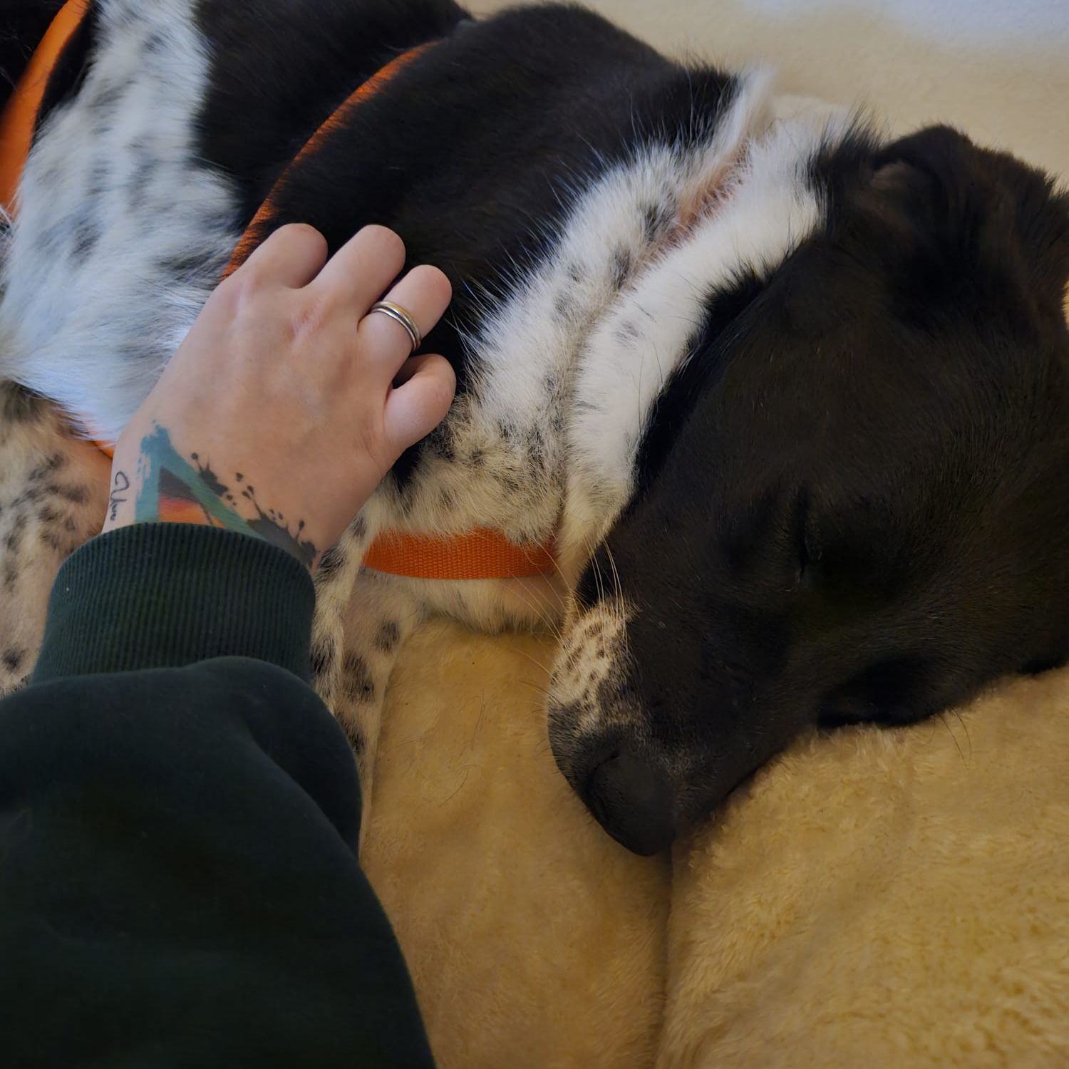 Liebe Frau Scholzen, wir möchten Ihnen gern ein kleines Update zu den ersten beiden Tagen mit Nami geben. Nami lebt sich bereits sehr gut ein und ist wirklich eine große Kuschelmaus. Sie genießt jede Streicheleinheit und fordert diese sogar aktiv bei uns und unserer Tochter ein. Auch jetzt gerade sitzt sie neben meinem Bürostuhl und legt die Pfote aufs Knie. Das Kennenlernen verlief vollkommen problemlos. Sollte es ihr einmal zu laut werden, zieht sie sich selbstständig an einen ruhigen Ort zurück. Insgesamt ist Nami eine ausgesprochen liebe und ruhige Hündin, man merkt ihr ihre ausgeglichene Art deutlich an. Ihr Körbchen hat sie sofort angenommen und bislang ist auch kein Malheur im Haus passiert. Wir freuen uns wirklich sehr. Außerhalb des Hauses wirkt Nami aktuell noch etwas sicherer als drinnen. Am liebsten würde sie vermutlich den ganzen Tag im Garten verbringen. Wir gehen daher regelmäßig mit ihr nach draußen und geben ihr viel Zeit zum Schnuppern und Ankommen. Zudem ist uns aufgefallen, dass Nami derzeit Blut verliert, ähnlich wie bei einer Läufigkeit. Wir werden dies vorsorglich tierärztlich abklären lassen, da sie ja kastriert ist. Möglicherweise hängt es auch mit dem Transportstress und entsprechenden hormonellen Veränderungen zusammen. Sollte sich etwas ergeben, melden wir uns selbstverständlich nochmal. Abschließend möchten wir uns ganz herzlich bei Ihnen und dem gesamten Verein bedanken. Sie leisten großartige Arbeit, und wir sind sehr dankbar, dass Nami nun bei uns ist und wir ihr ein liebevolles Zuhause schenken dürfen. Im Anhang finden Sie außerdem ein paar Fotos von den ersten Kuscheleinheiten hier zuhause: