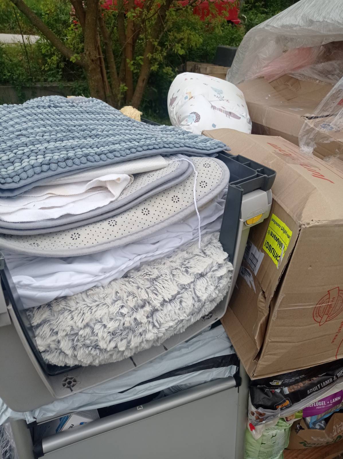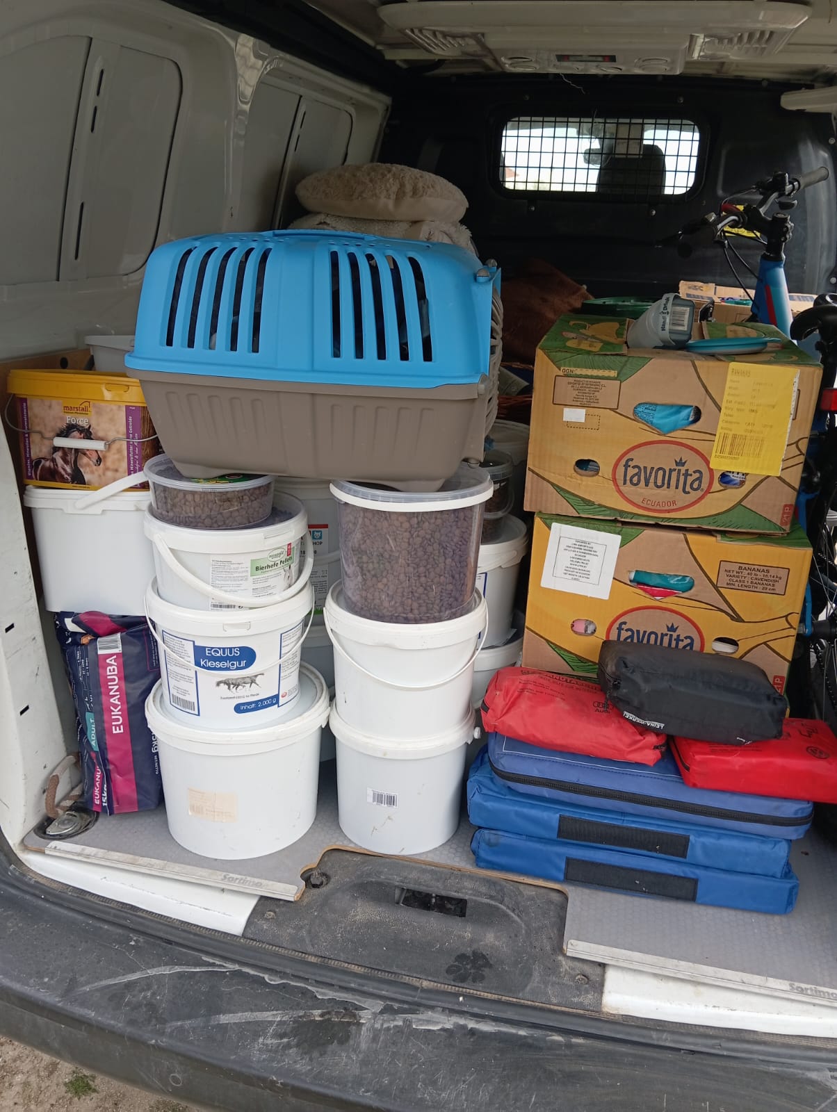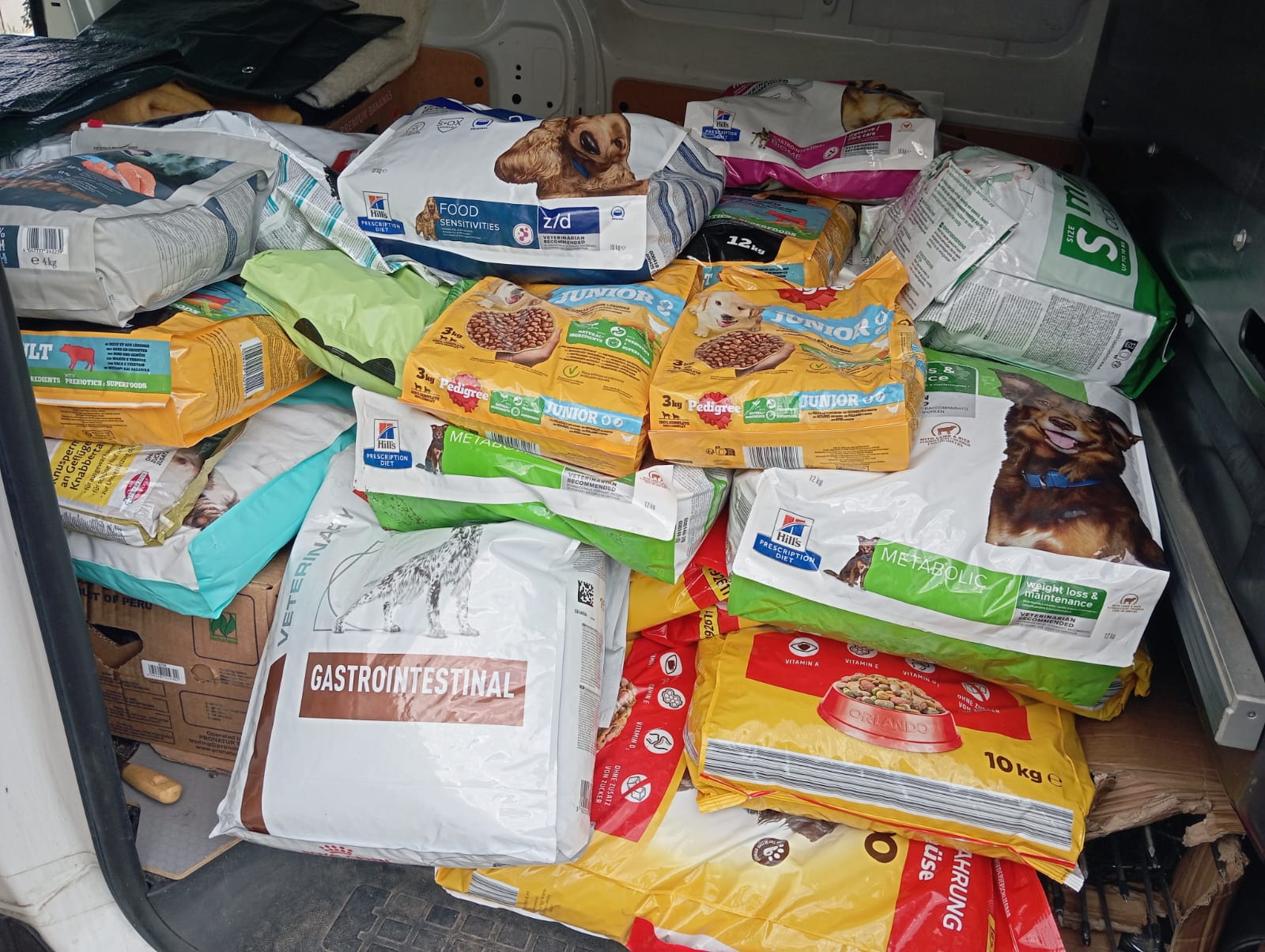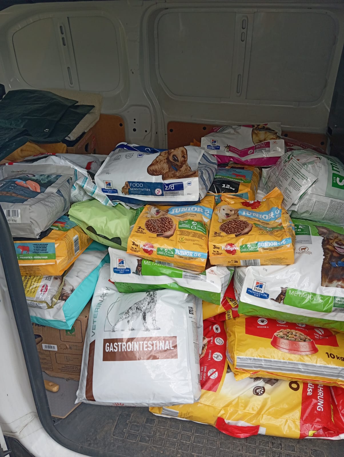 Absolut vollgepackt mit Futter, Hundebetten, so viel Spielzeug für unsere Hunde, Handtücher, Boxen und vielen vielen anderen Dingen!!
