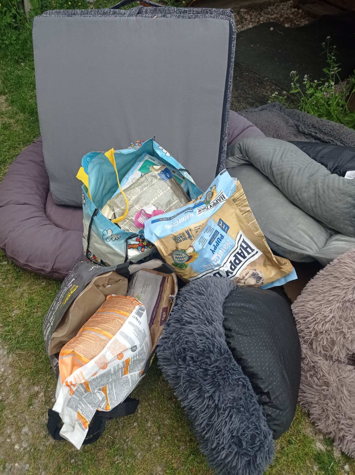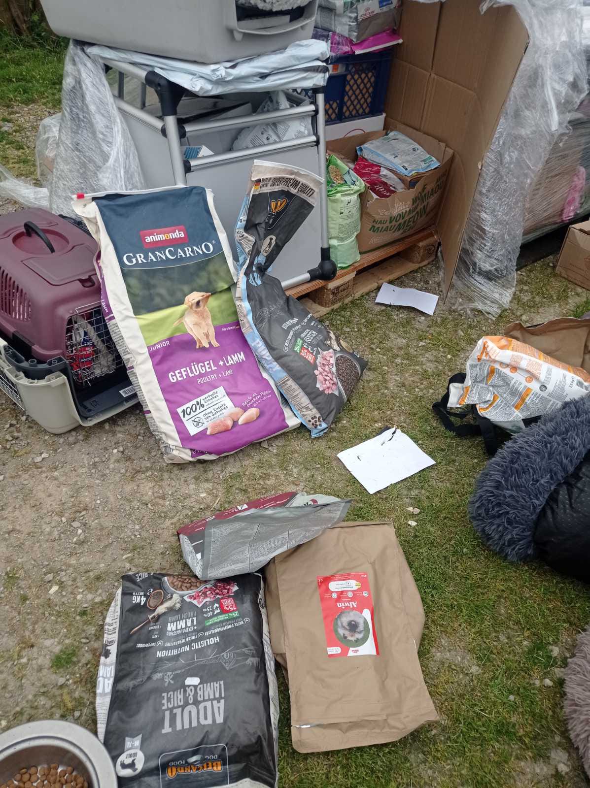 Zwei Paletten voller Futter, Hundebetten, Decken, Handtüchern und anderen nützlichen Dingen sind angekommen.