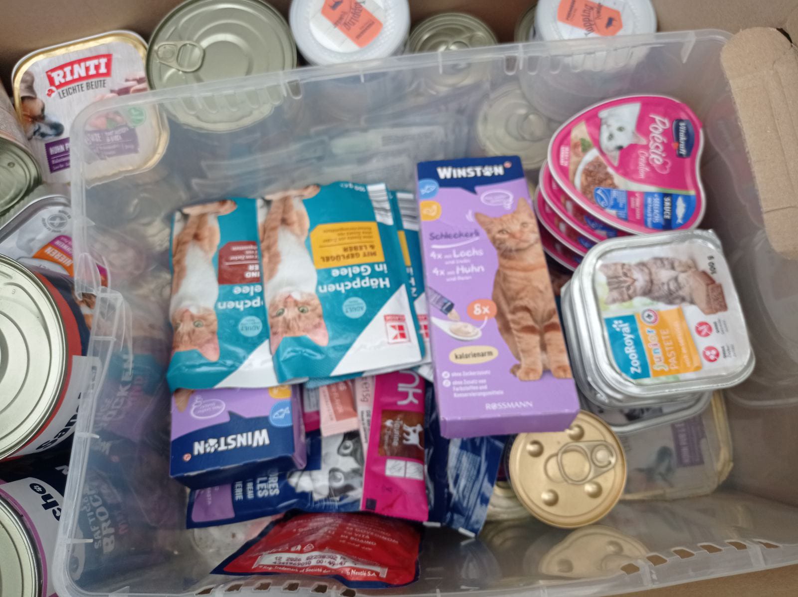 3 Paletten erreichten uns wieder vor einigen Tagen, gefüllt mit wunderbaren Dingen: Futter, Körbchen, Dosen, Spielzeug, Handtücher und so so viele andere Sachen.