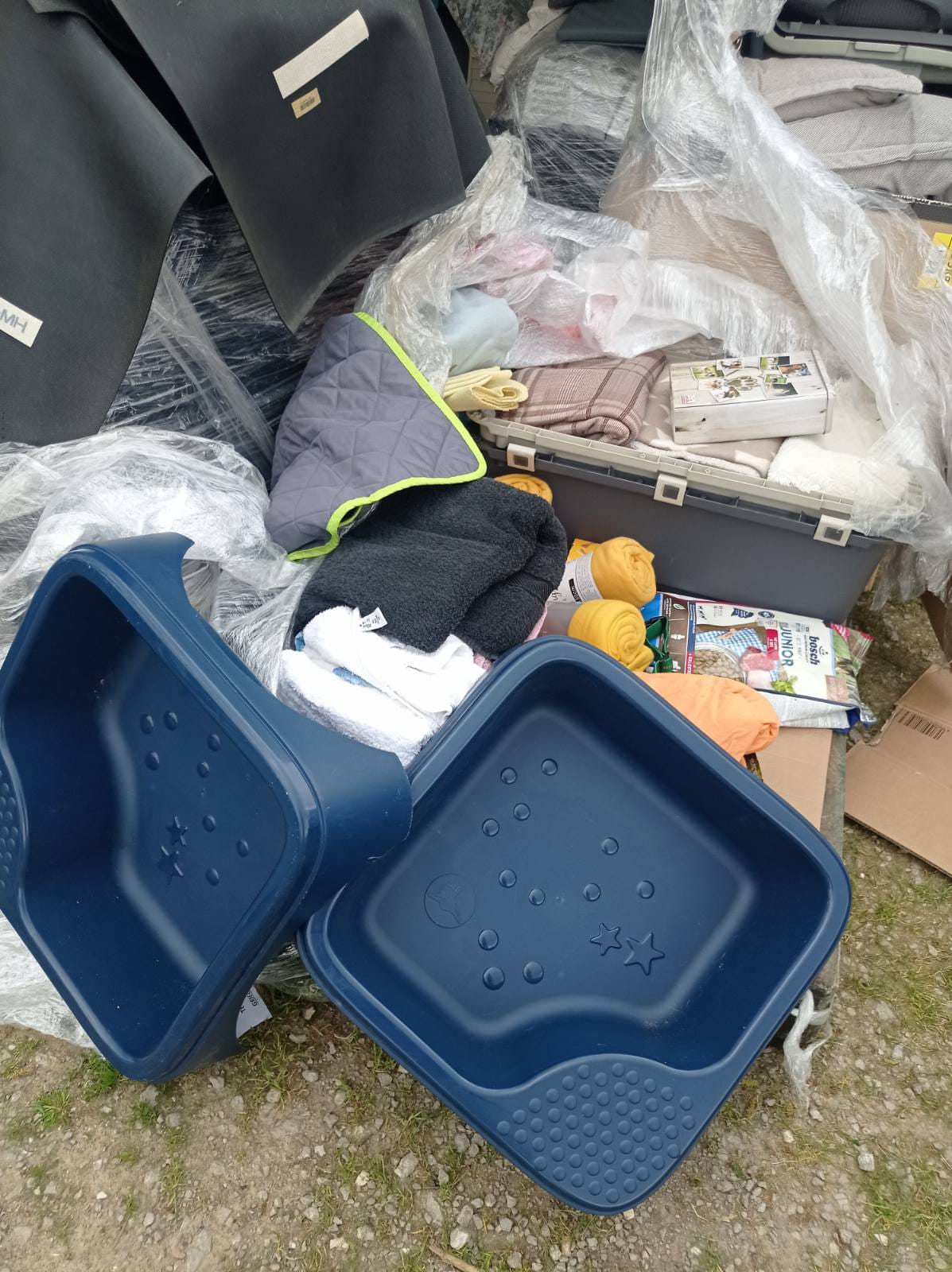5 pallets arrived full of blankets, towels, dog beds, carpets, food.toys for our new puppies, wet dog food The best for this season because we have a lot of rain the last weeks.