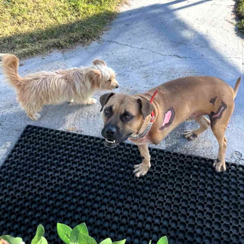 Es gibt weitere schöne News von Patroklos: Seine Wunden sind vollständig verheilt, und sein neues Leben mit drei Beinen ist inzwischen ganz selbstverständlich für ihn geworden. Er hat sich hervorragend eingelebt und genießt seinen Alltag in vollen Zügen. Gemeinsam mit seiner Hundefreundin bildet er ein unglaublich harmonisches Team. Wie gut es ihm geht, sieht man auf den aktuellen Bildern: