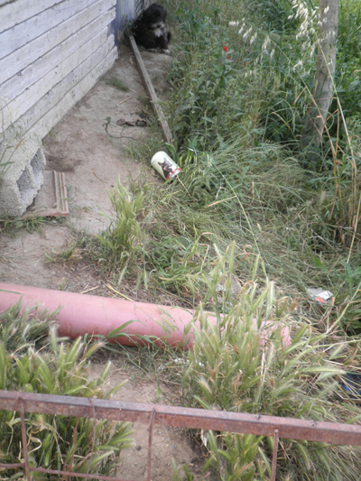 Mehrere Tage muss sie dort gelegen haben, die spätere Anruferin teilte Kostas mit, sie hätte ihr regelmäßig Futter und Wasser gebracht, anfassen wollte sie den Hund aber nicht. Kostas fuhr natürlich hin, fand eine liebe, junge Hündin vor, deren Rückgrat wahrscheinlich gebrochen war. Er konnte nicht mehr viel tun, die Verletzung war zu heftig und so brachte er sie zum Tierarzt und musste sie dort erlösen lassen. Und sie begraben, denn er lässt kein Tier dort um es in den Müll werfen zu lassen. Jedes bekommt wenigstens ein Grab.