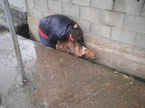 Der Hund war verängstigt, natürlich, und wir tragen immer ein Risiko , aber dieses Risiko gab es bis gestern, heute haben wir die Schutzhandschuhe , so können wir ein klein wenig sicherer arbeiten um ihn zu retten...aber dieser Hund hat es nun geschafft...