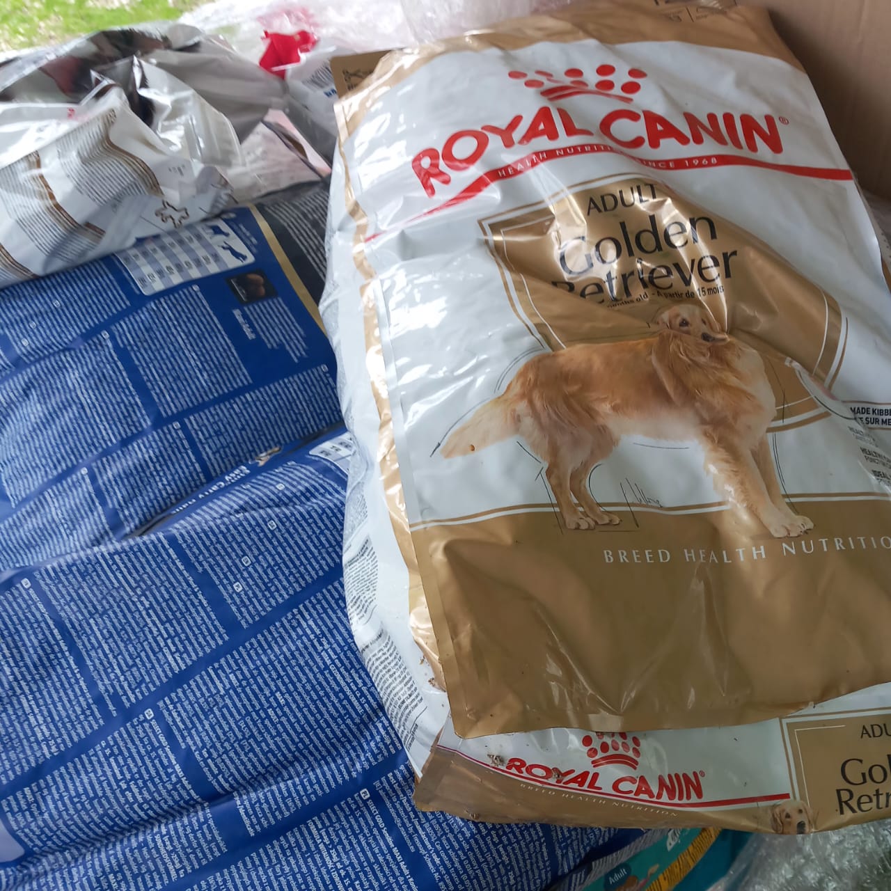 Pallets filled with food, many dog ​​houses, medicines, blankets, sheets, many useful towels, toys, dishes,pool dog cots and so much more that the joy and relief for us and our dogs was huge!