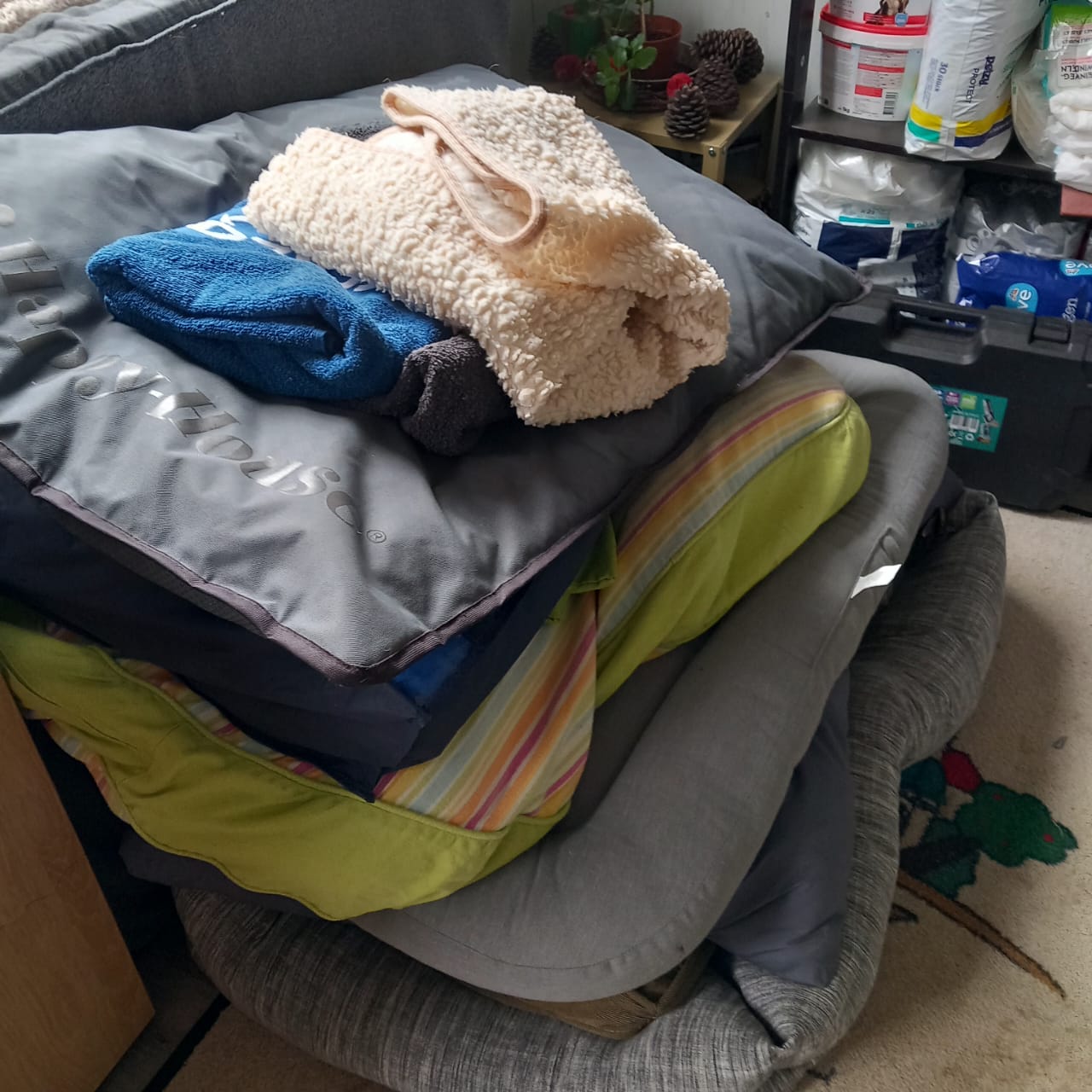 Blankets, toys, many dog beds, towels, medicines and all these goods that make our animal lives and ours better and more painless!