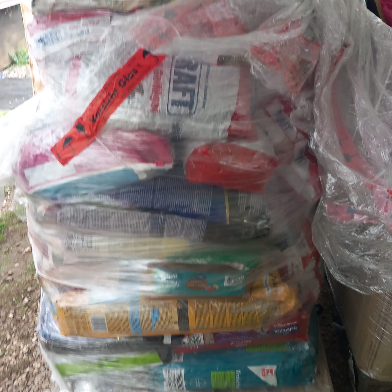 1 pallet come with dog house, dog food, bed dogs, blankets and toys for our animals