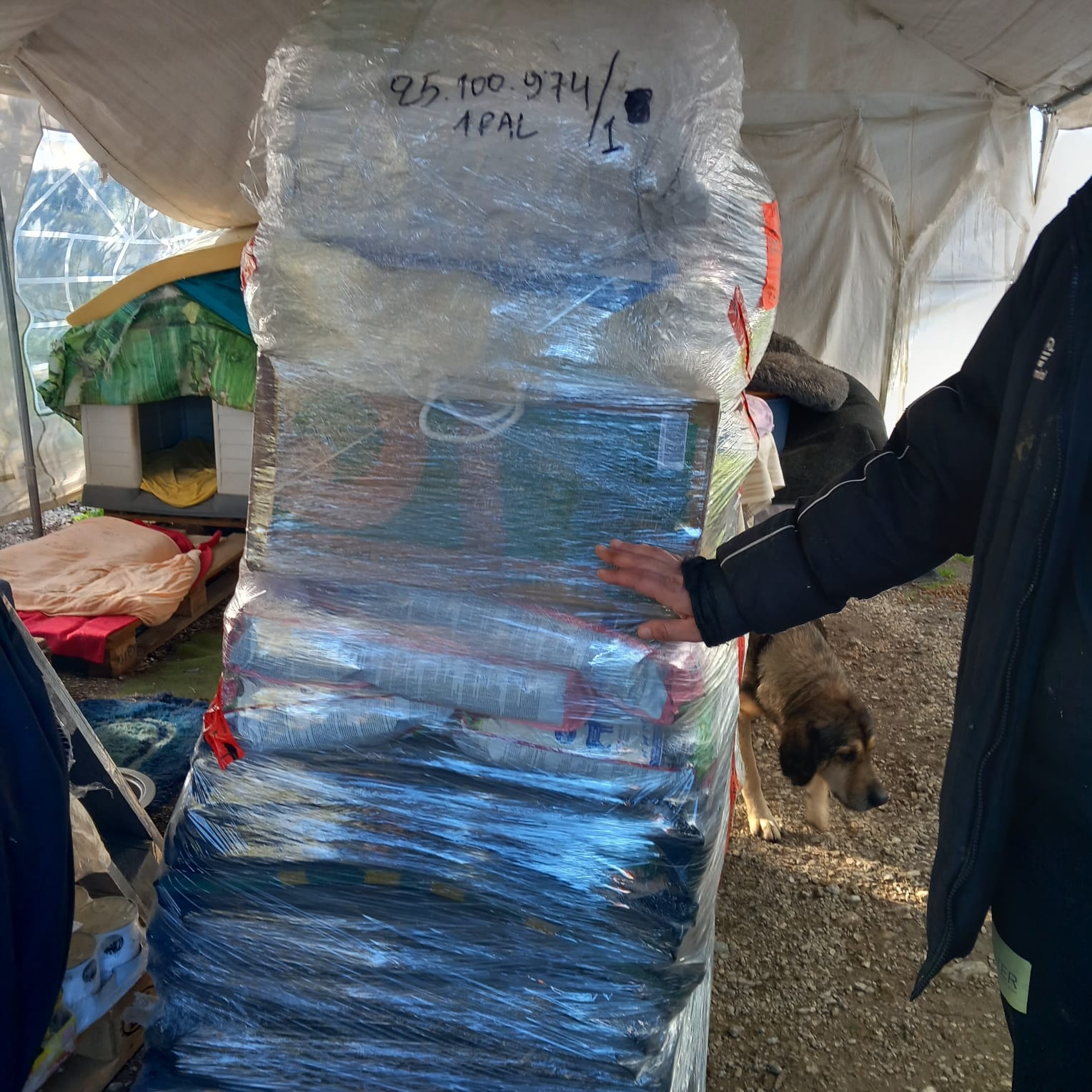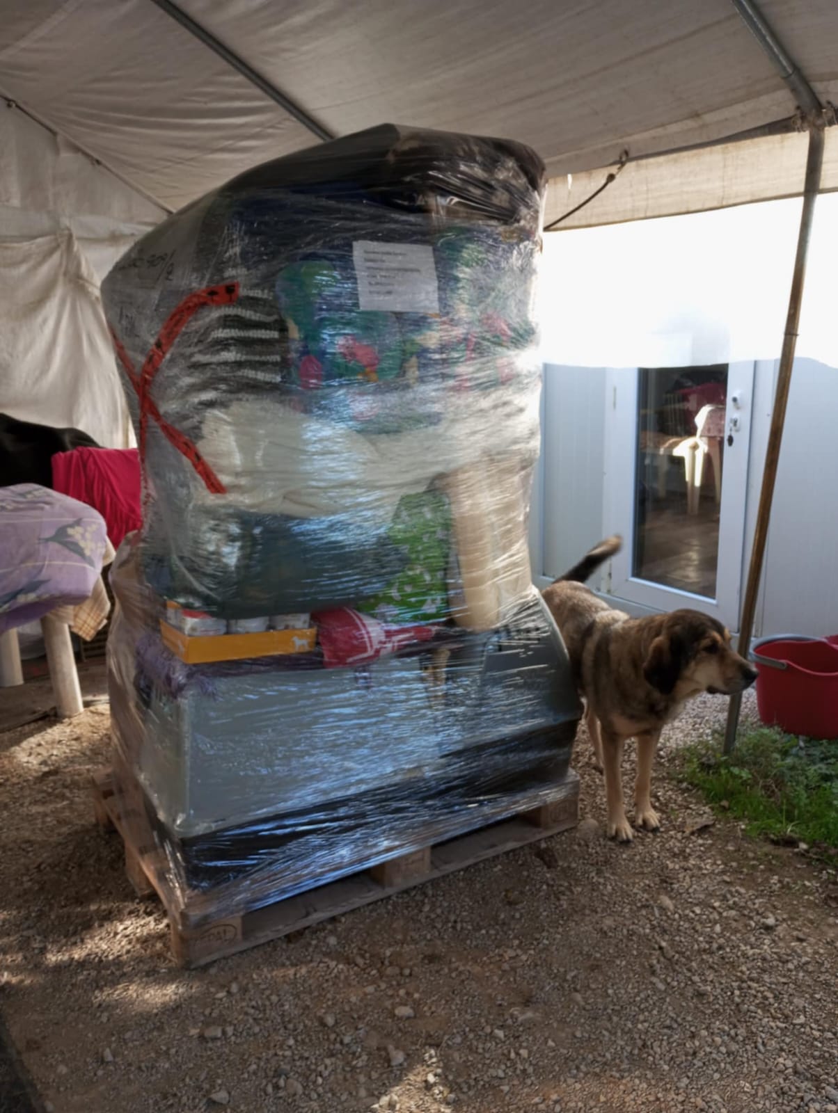 two pallets arrived full of food, dog beds, blankets, towels and other useful things.