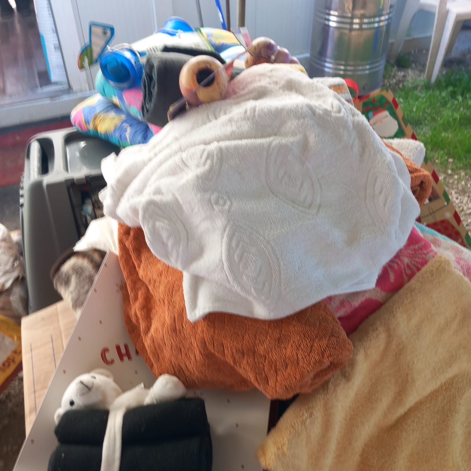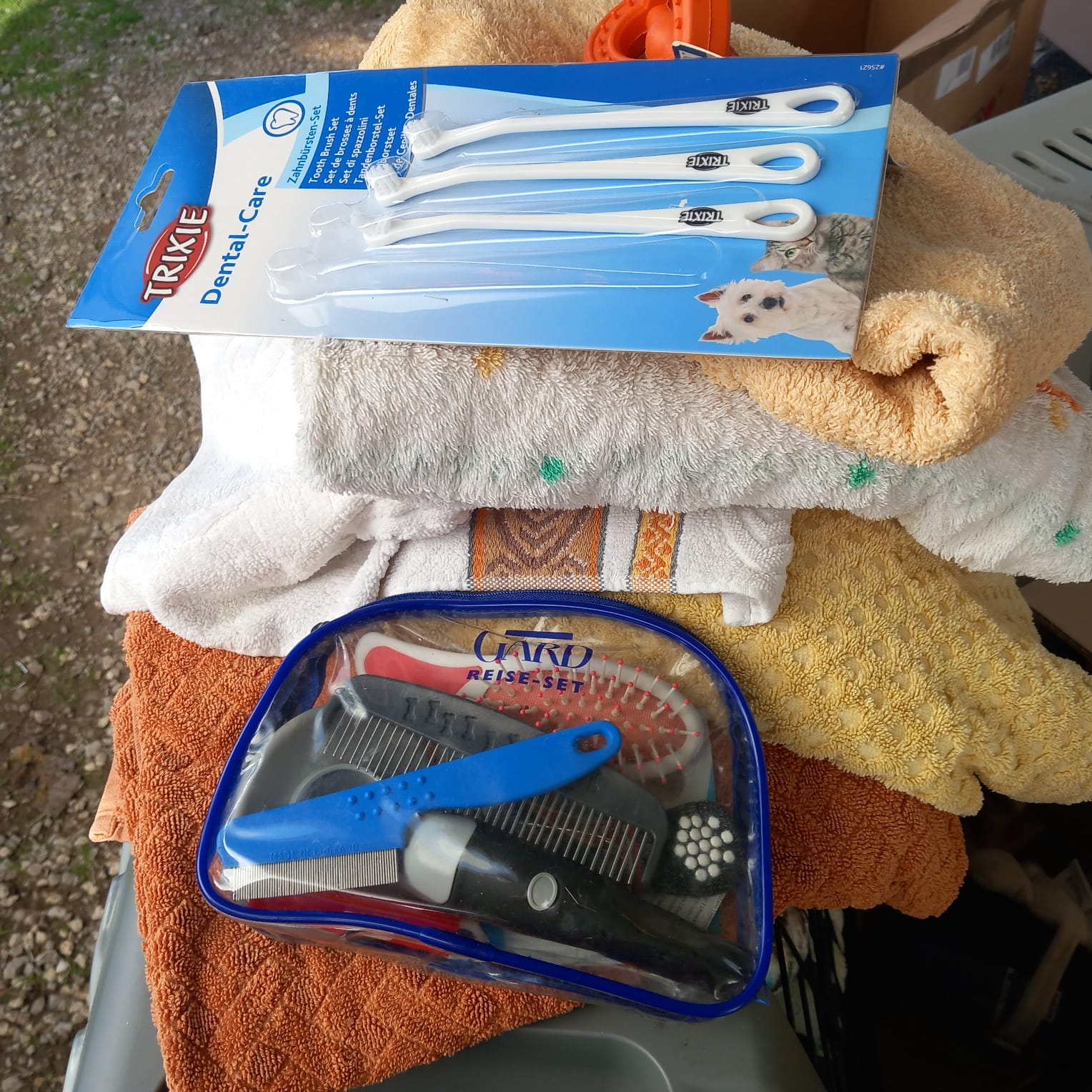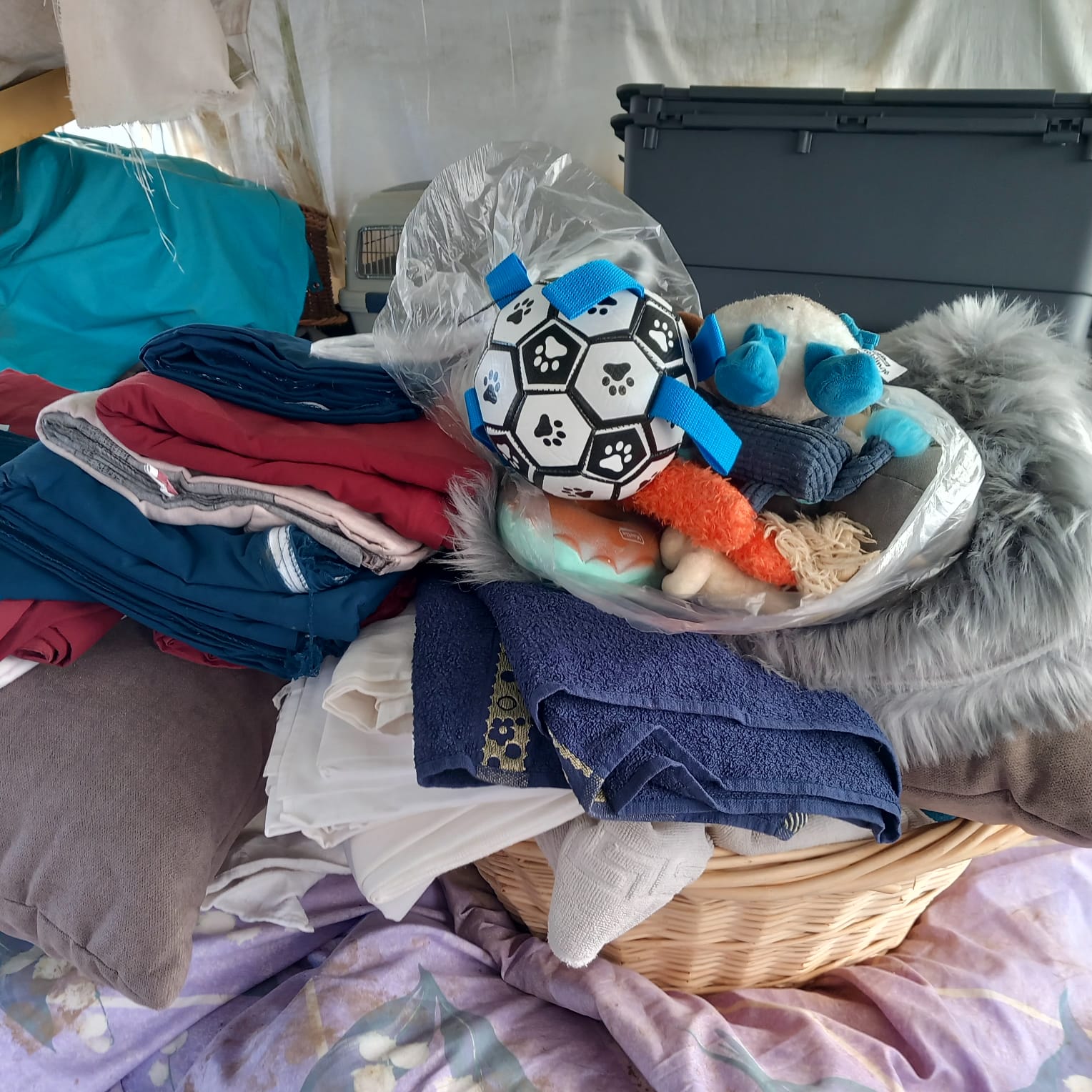 Viele Geschenke für uns, Decken, Handtücher, jede Menge Spielzeug (welches immer ein großer Spaß für unsere Tiere ist).