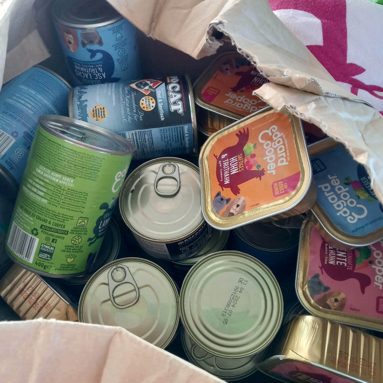 wir erhielten vor einigen Tagen eine riesengroße Spende: 7 Paletten mit Dosenfutter, sowie 1 Palette mit Trockenfutter.