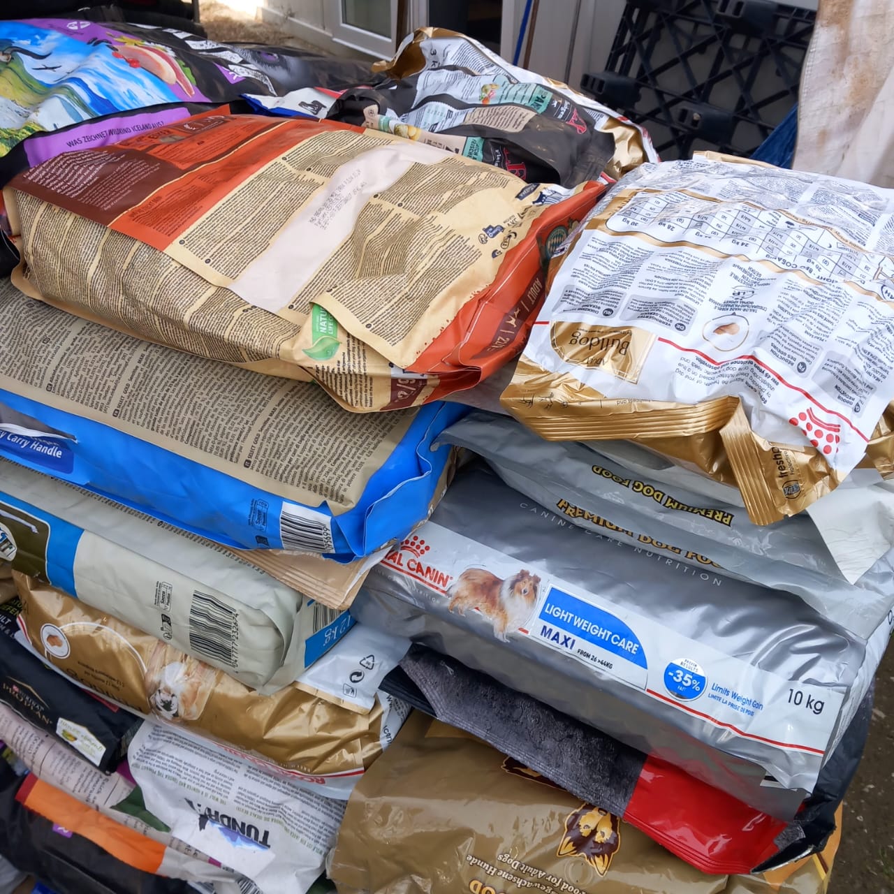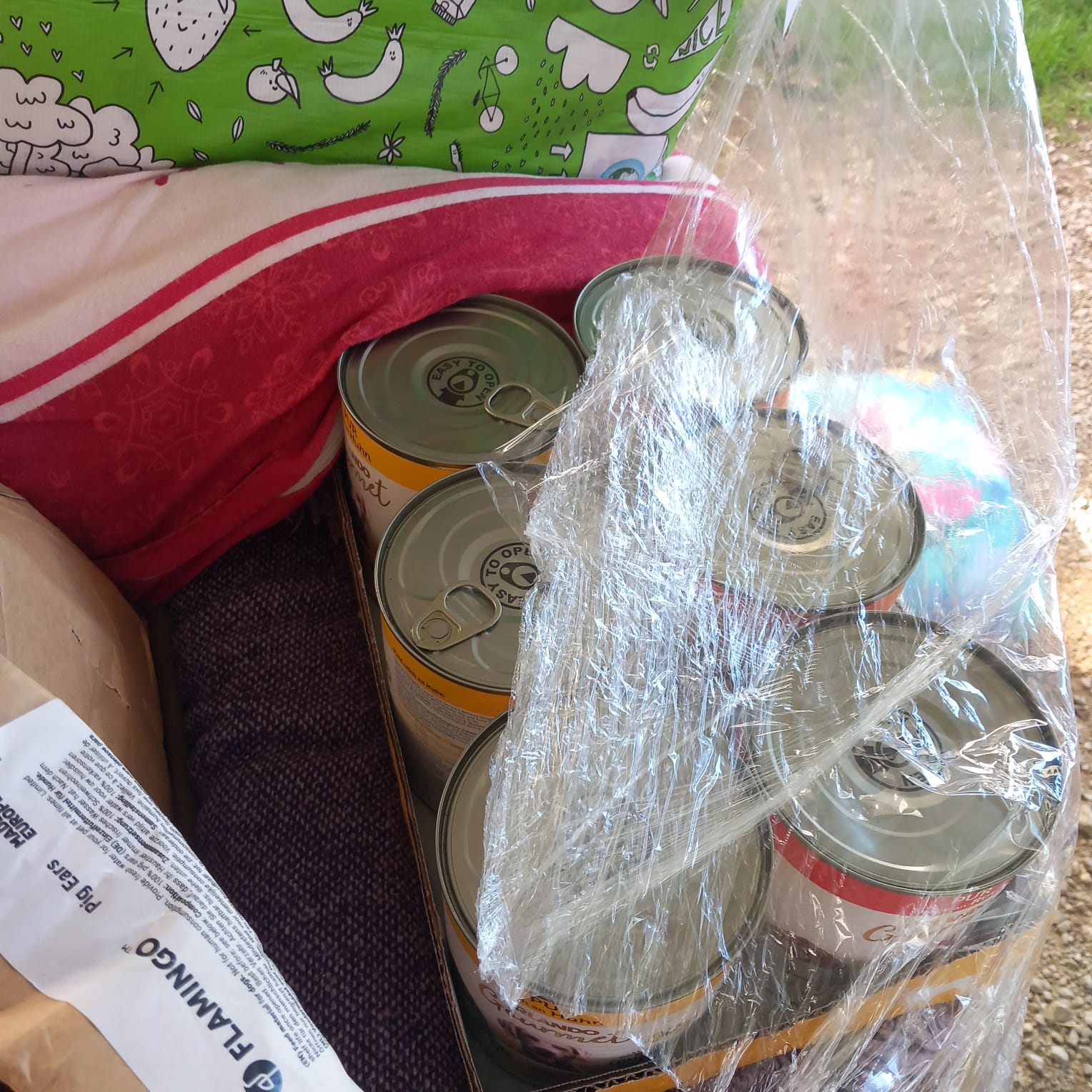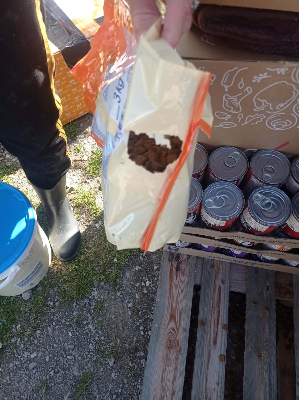 Vor ein paar Tagen, gegen 16 Uhr, erhielt ich zwei weitere Paletten voller wertvoller und nützlicher Dinge, insbesondere dem notwendigen Futter für die Streuner, Hunde und Katzen.