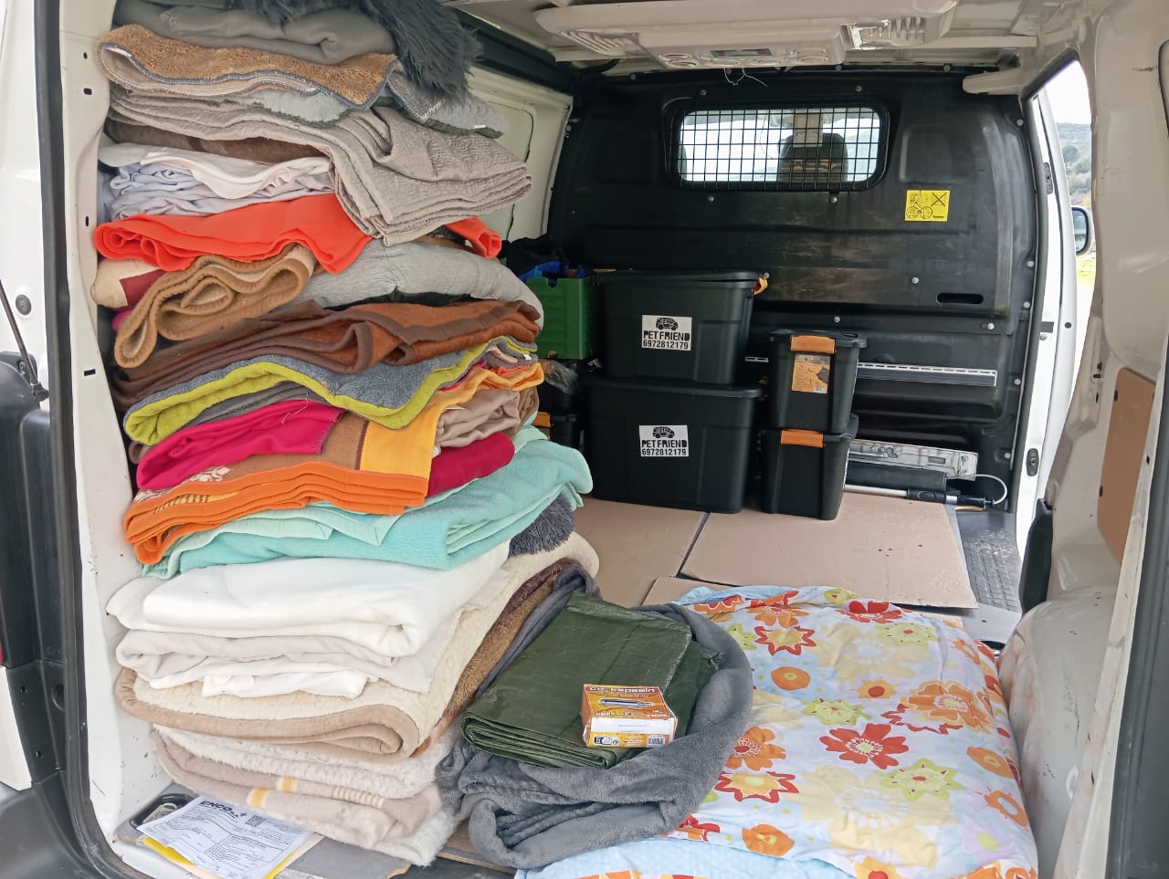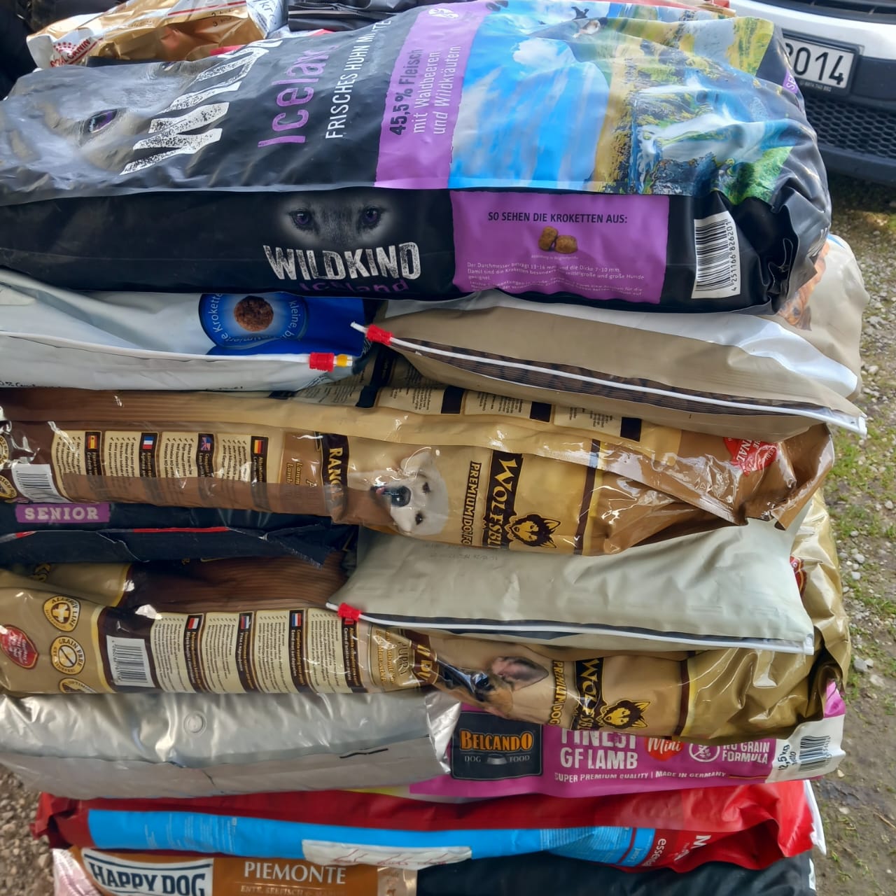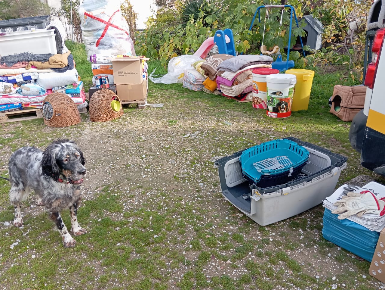 All the stuffs are so useful and necessary for our fight here in Kavala. About 250 kg of dry dog food plus about 100 kg of tiny. About 100 kg of dry cat food plus about 50 kg of tiny and full of necessary blankets.