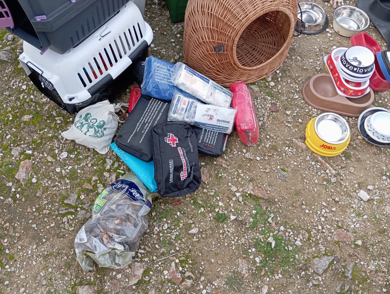 Die Sachen sind so hilfreich und notwendig für unsere Arbeit hier in Kavala. Etwa 250 kg Trockenfutter für Hunde und ca. 100 kg Katzenfutter, ca. 100 kg Katzenfutter und ca. 50 kg Katzenfutter sowie viele Decken.