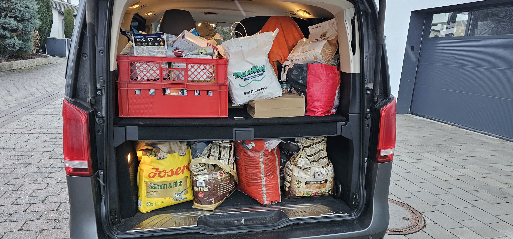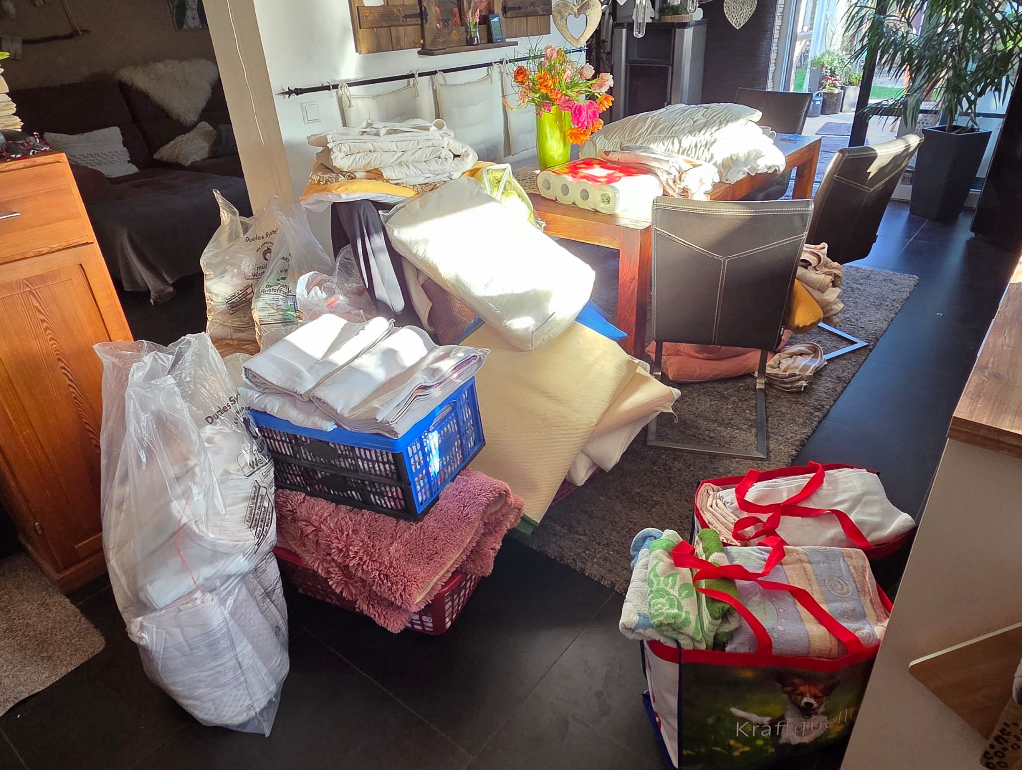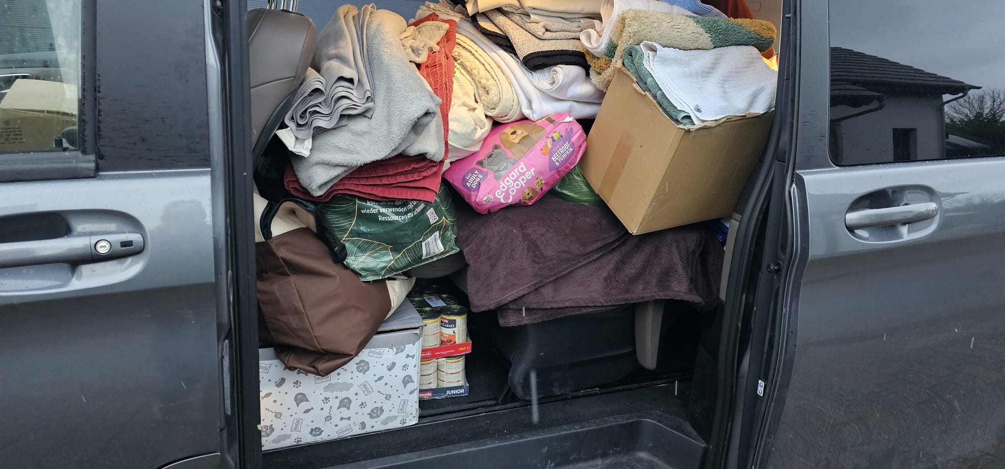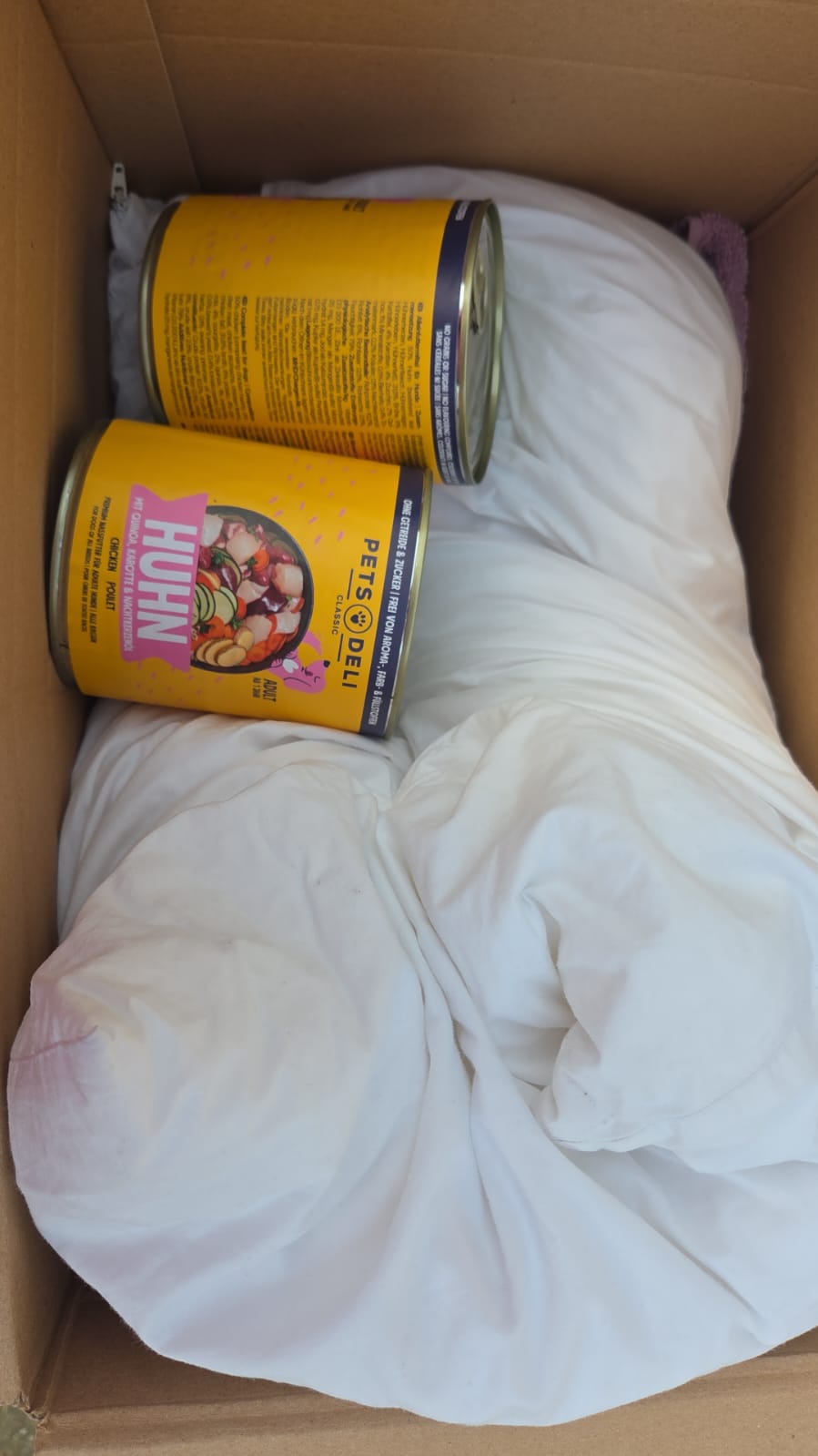 Aufgrund unseres dringenden Hilferufs konnte unsere Nicole kurzfristig eine große Spendensammlung in ihrem Heimatort organisieren. Mit ihrem Bus machte sie sich auf den Weg und kehrte bis unters Dach beladen wieder zurück. Dank der großartigen Unterstützung vor Ort kamen zahlreiche Sachspenden zusammen - von Futter über Decken bis hin zu weiteren dringend benötigten Handtüchern und Zubehör:
