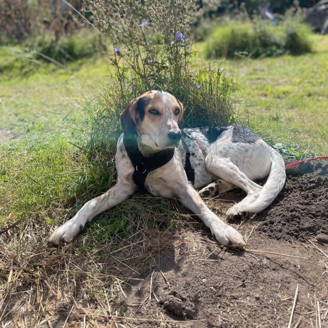 Vorgeschichte: Rick wurde mit Lea gemeinsam auf einem verlassenen Hof gefunden. Die Besitzer waren vor einiger Zeit ausgezogen und hatten die Beiden scheinbar einfach dort zurückgelassen. Die Hunde waren stark ausgehungert und suchten -fast schon exzessiv- nach etwas essbarem auf den umliegenden Feldern. Glücklicherweise fiel genau das einer befreundeten Tierschützerin auf, und so hielt sie an um nach dem Rechten zu sehen. Als sie die Situation erkannte, nahm sie beide Hunde mit zu sich nach Hause, und fragte dann bei Evi um Hilfe an.