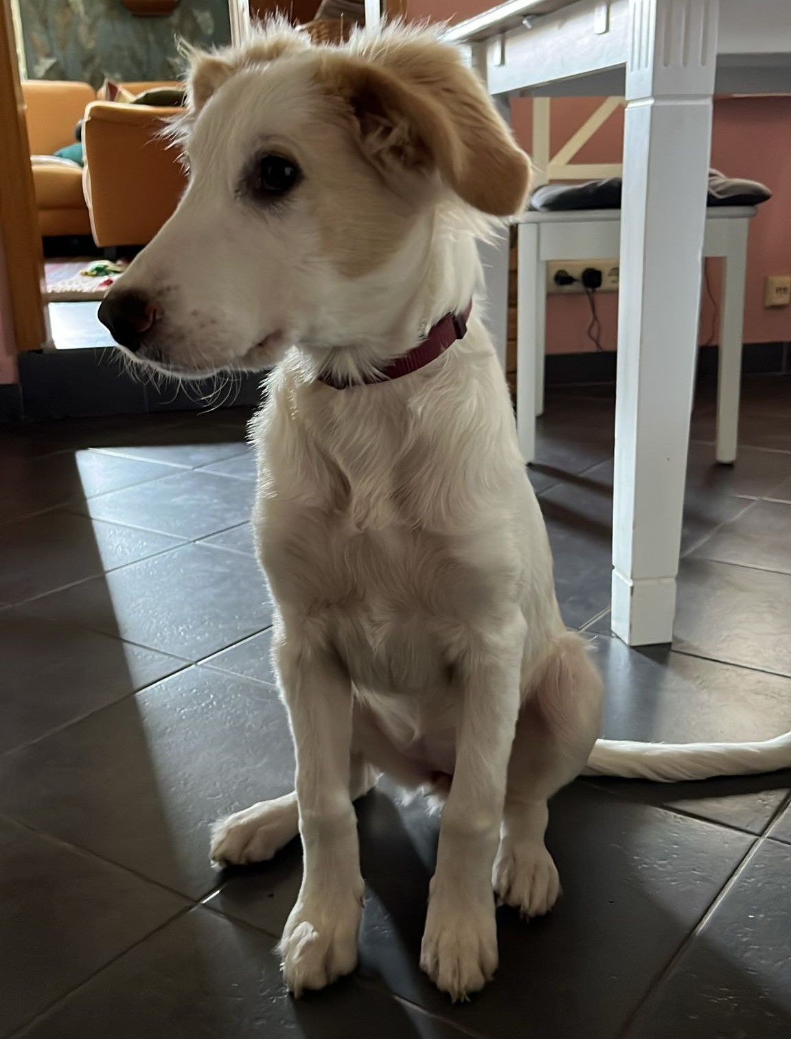 28.09.2025 "Lani ist ein wirklich toller Hund. Nach drei Wochen klappt schon einiges, z.B. auf Freigabe beim füttern warten oder beim heimkommen nicht vordrängeln (Tür aufschließen wird sie bei aller Gelehrigkeit wohl nie hinkriegen), im Garten toben klappt auch schon ganz gut. Spannend ist ihre Reaktion auf die Vergrößerung ihrer Reichweite, dass Hund jetzt fast auf den Tisch kucken kann, findet sie toll. Wir nur begrenzt, aber sie bettelt nicht, sondern klaut nur Vergessenes":