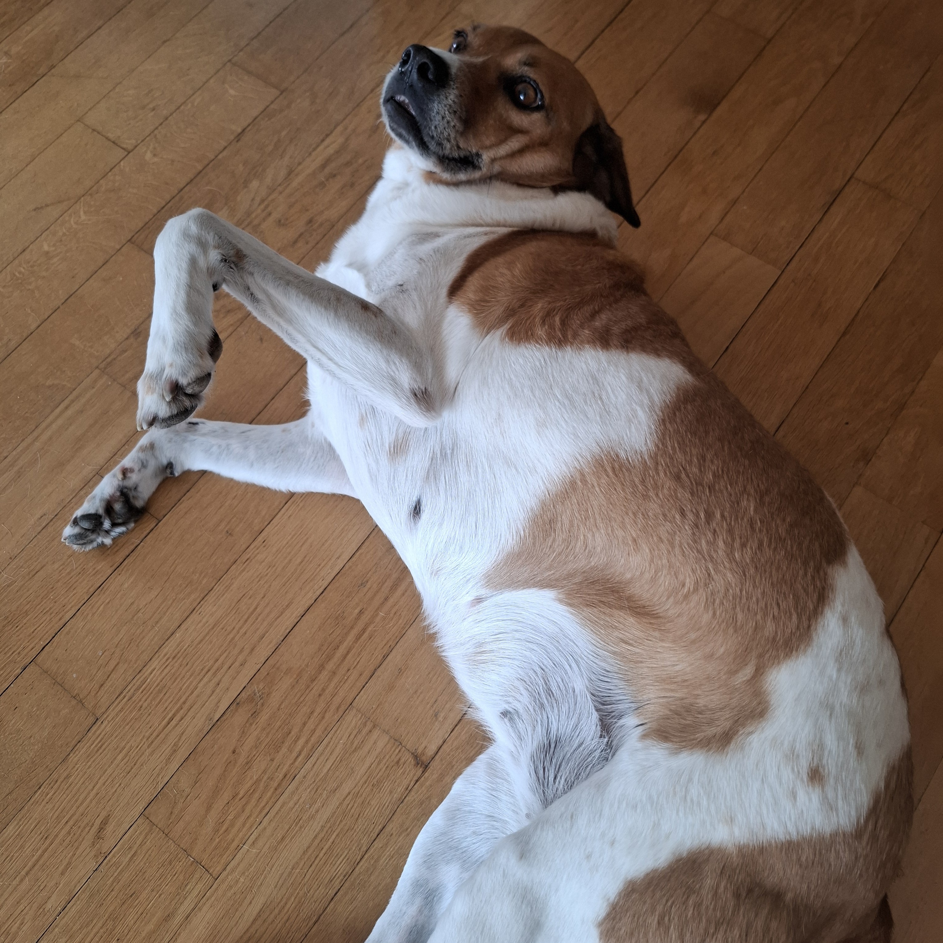 Hallo Jenni, Kanela (jetzt Vulpi) hat sich super schnell bei uns eingelebt. Sie ist sehr neugierig, liebt ihre Spaziergänge und schläft viel. Natürlich war der Start nicht ganz ohne Herausforderungen, da sie die Katzen sofort anbellte und jagen wollte. Auch wenn sie sie mittlerweile nicht mehr anbellt, reagiert sie dennoch ab und zu impulsiv. Wir üben fleißig und haben eine Hundetrainerin zur Unterstützung. Außerdem haben wir nächste Woche einen Tierarzttermin, um sie durchchecken zu lassen, nochmal gründlicher den aktuellen Juckreiz abzuklären und auch über ihr Gewicht zu sprechen. Trotz dieser Sachen fühlt sie sich hier sehr wohl, begegnet anderen Hunden freundlich, und wir hoffen, dass sich auch die Situation mit den Katzen weiter entspannt, damit sich alle Zuhause wohlfühlen :) Fotos schicken wir gerne zu: