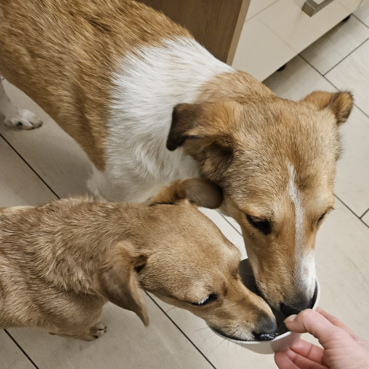 Guten Morgen liebe Frau Scholzen, wir alle haben die erste Nacht sehr gut überstanden. Sofia hat im Körbchen unten geschlafen, Maya oben. Heute morgen kam Sofia dann nach oben. Ich bin dann mit ihr in den Garten gegangen, da hat sie ein Häufchen gemacht. Pipi gestern Abend erst nach dem 3.x rausgehen. Maya war bis heute morgen noch etwas nölig, aber nachdem sie sie draußen beim Spielen jagen konnte, war alles fein. Gemeinsames Füttern klappt auch gut und auf der Gassirunde vorhin lief Sofia schon richtig gut. Wir wünschen Ihnen einen schönen 3. Advent