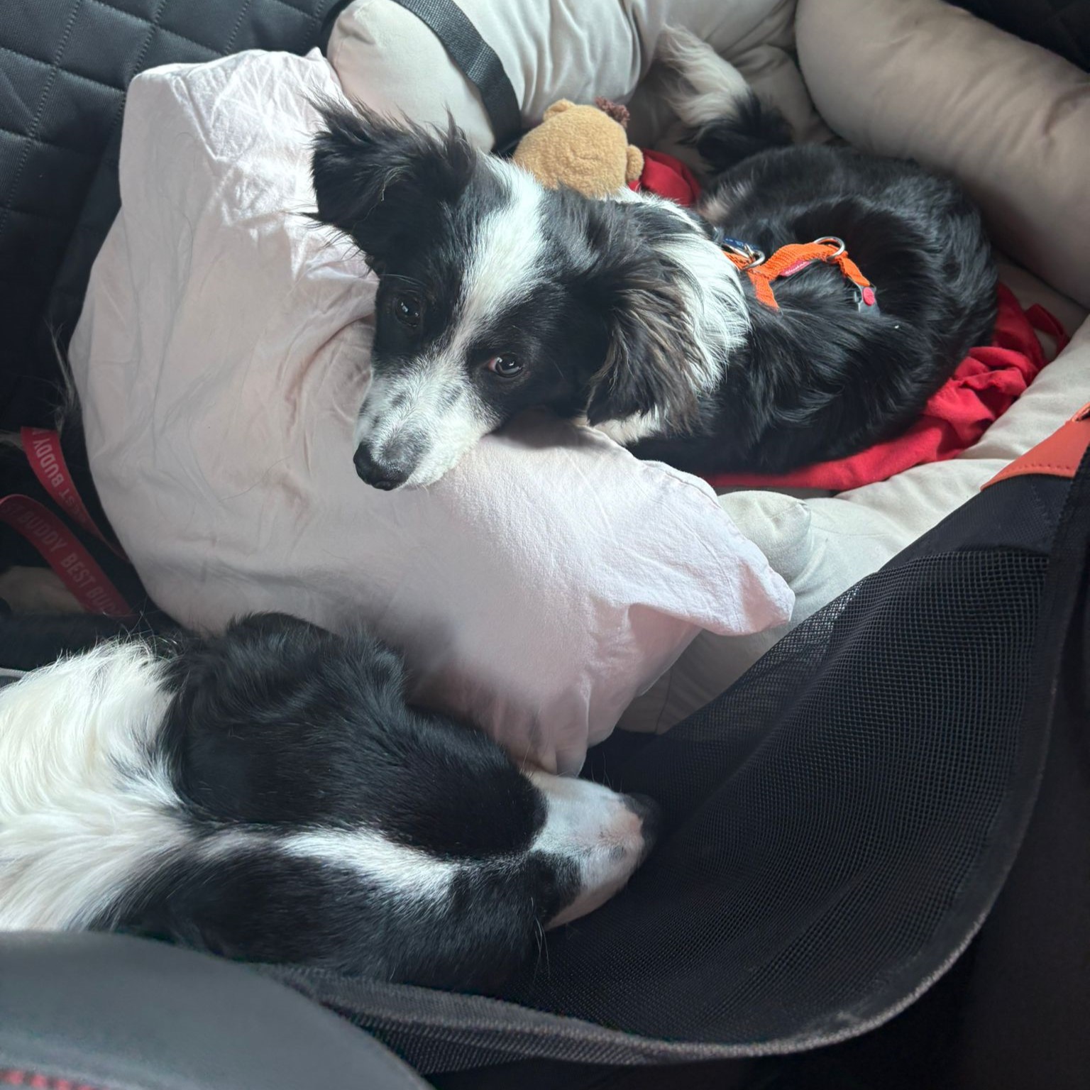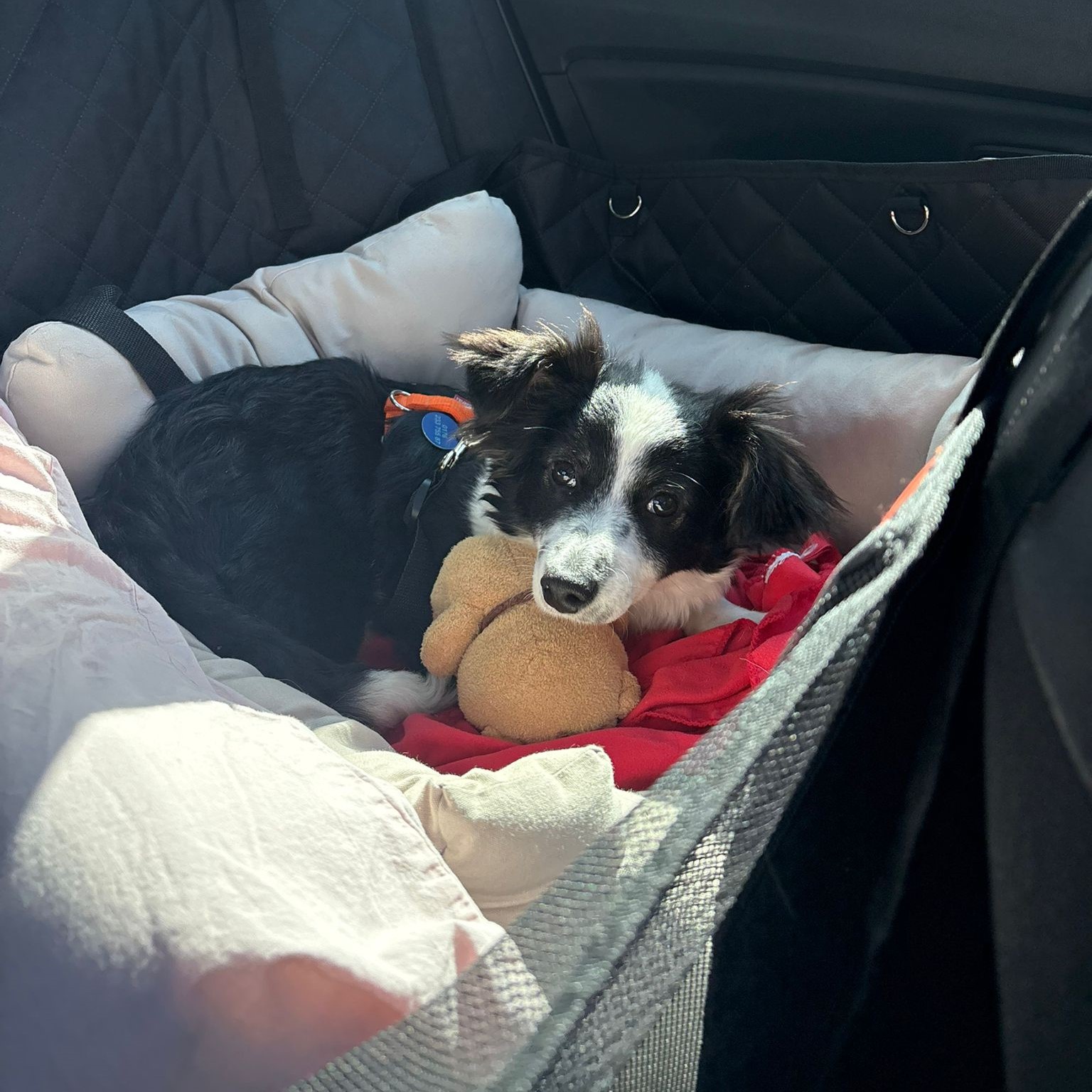 Teddy auf dem Weg in sein neues Zuhause, Nana passt gut auf ihn auf: