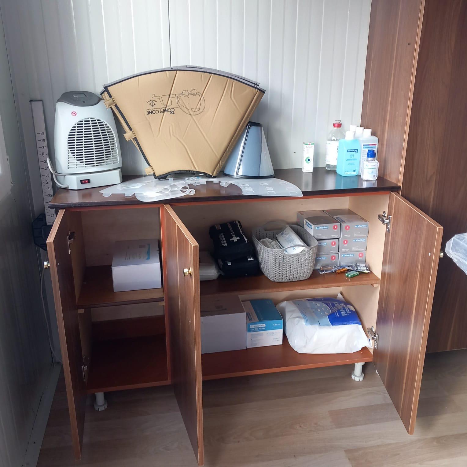 In den kommenden Wochen werden wir den Container schrittweise mit den notwendigen Materialien und Ausstattungen versehen - unser Ziel ist ein bestmöglich eingerichteter Behandlungsraum. Damit legen wir die Grundlage für einen nachhaltige Verbesserung der tierärztlichen Betreuung im Shelter.