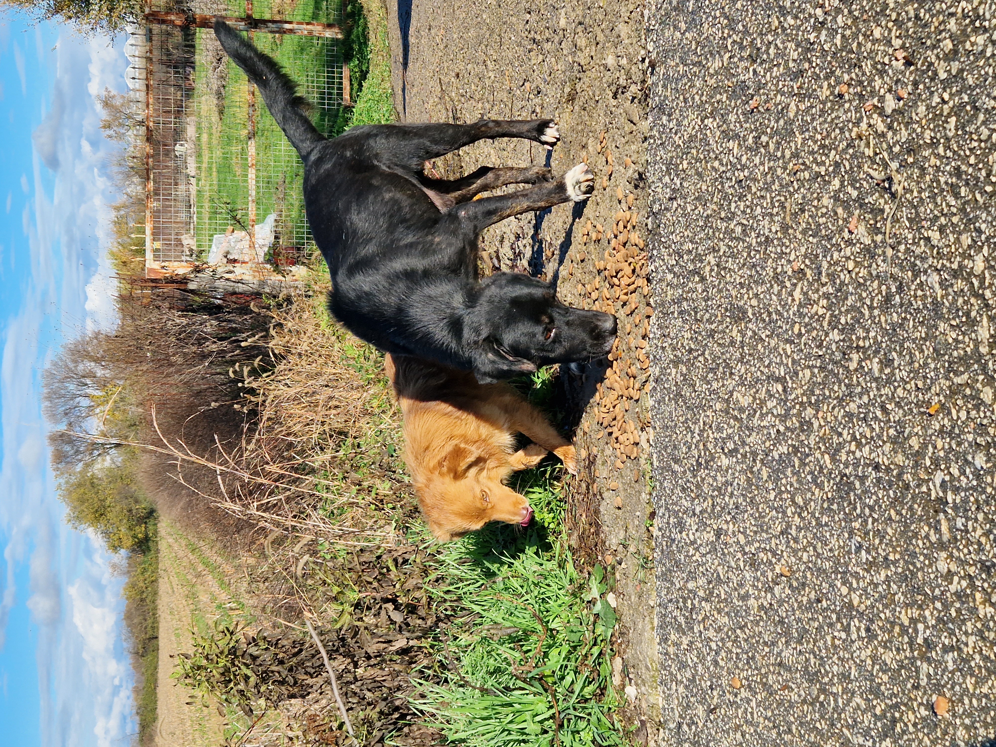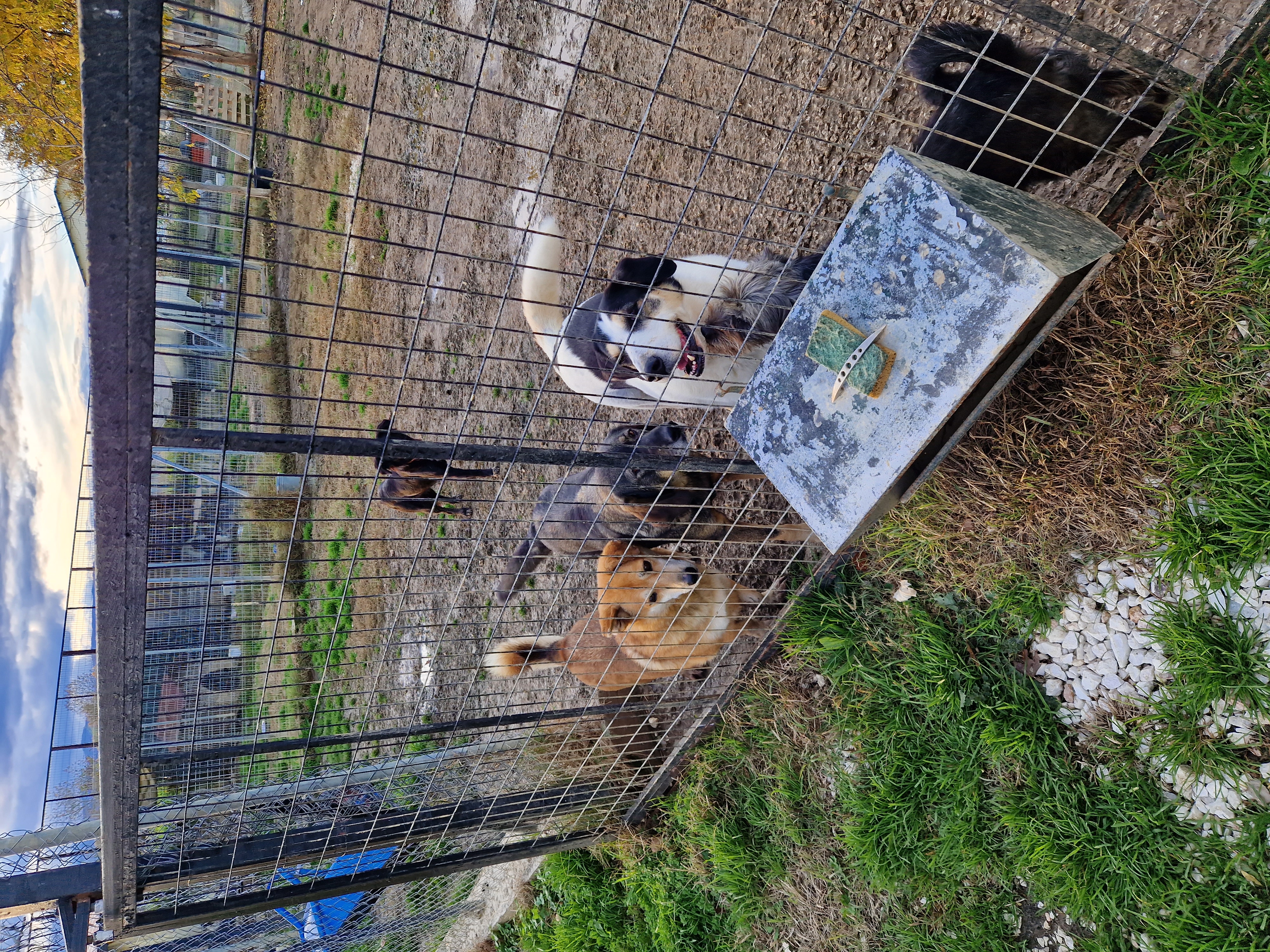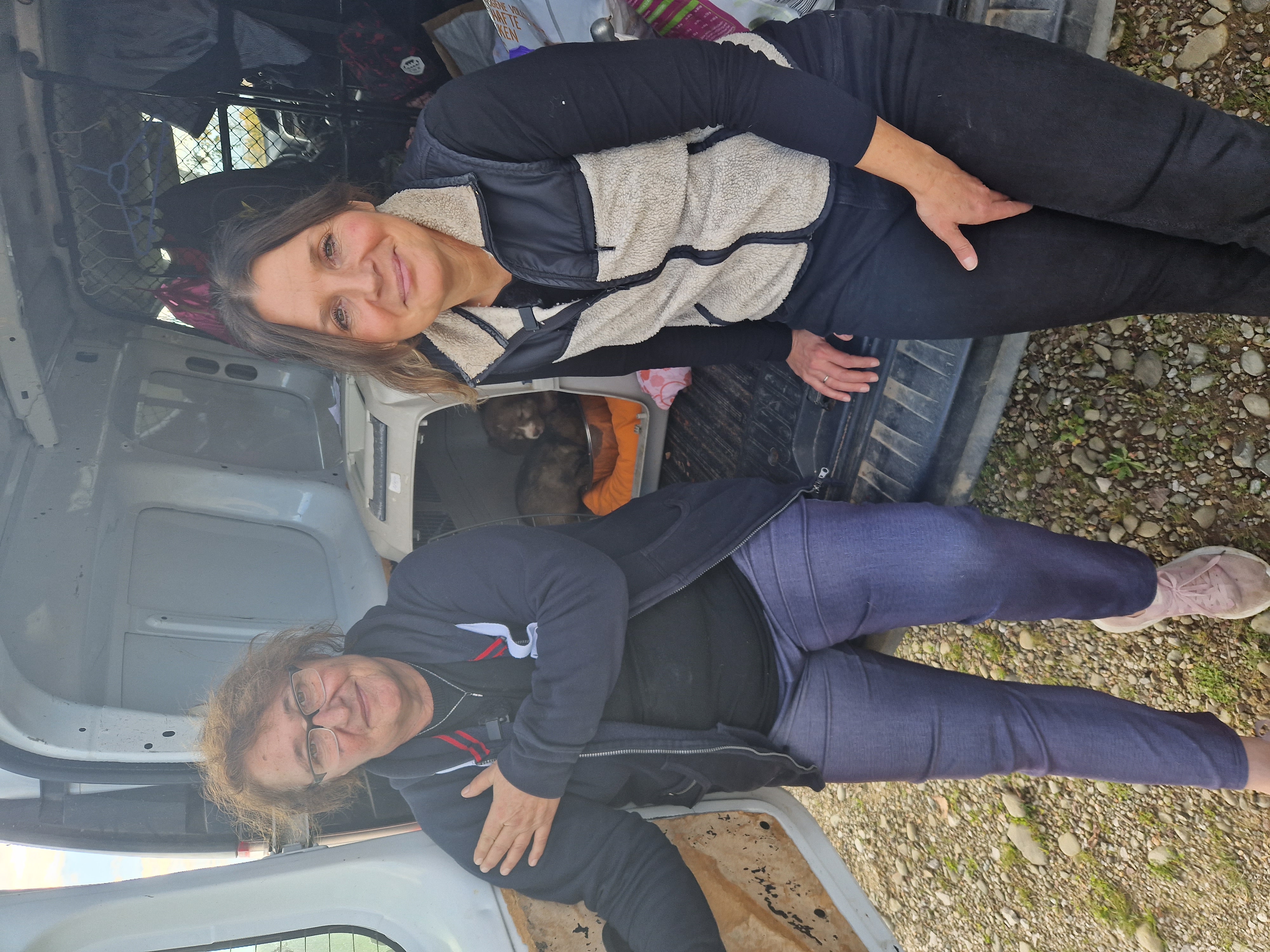 Wir waren noch nicht ganz aus dem Rathaus raus, da klingelte Evi's Telefon: Ein Fußgänger meldete ausgesetzte Welpen im Bewässerungskanalsystem. Es stand außer Frage: da fahren wir hin, suchen die Welpen und bringen sie in Sicherheit. Als wir angekommen waren, liefen wir ein paar Meter und schon hörte man die 3 Racker verzweifelt quieken: allein zurückgelassen auf dem nass-kalten Betonboden des Kanalnetztes, welches (für diesen Tag Gottseidank) nur in den Sommermonaten für die Bewässerung der Felder genutzt wird. Wir nahmen sie sofort hoch, gaben ihnen eine große Portion Futter und ein warmes Plätzchen. Uns ist der Ort nicht unbekannt: im gesamten Kanalsystem werden regelmäßig Welpen und auch erwachsene Hunde ausgesetzt, wenn sie von den Besitzern nicht mehr erwünscht sind. Wären wir nicht gerufen worden, hätten die 3 dort keine Überlebenschancen gehabt :( Es stockt einem natürlich der Atem, mit welcher Herzlosigkeit die Hunde "entsorgt" werden -> Video "Welpenrettung". Mit den Welpen im Gepäck ging es dann Richtung neues Tierheim. Als wir ankamen, war Vaitsa bereits fleißig bei der Fütterungsrunde am Nachmittag. Nachdem Goran das Tierheim per Drohne erkundet hat und Thanasis die 3 Welpen abgeholt hat, ging es ins Tierheim. Wir zeigten einige "Baustellen", redeten über die Hunde, deren Geschichte, über Evi's Arbeit und vieles mehr. Simone und Goran waren sehr ergriffen, als Evi davon berichtete, wie sie im September die Hunde aus dem Wasser gerettet hat. Auch für uns ist das immer noch eine sehr emotionale Geschichte, weil uns sowohl das Leben der Hunde am Herzen liegt, aber besonders auch Evi's Einsatz in der Nacht nicht ungefährlich war: Wir schauten die Tage über fast minütlich auf unsere Handys und warteten auf ein Lebenszeichen von unseren Freunden. Evi hatte kürzlich eine weibliche Hündin aufgenommen, die von einem Mann abgegeben wurde. Sie bekam kurz danach 4 Welpen, die sie nun liebevoll aufzieht (natürlich kommen die Mama und auch die Welpen, sobald sie geimpft und alt genug sind, in die Vermittlung). Ob die Abgabe mit der Trächtigkeit zusammenhängt, kann man nur erahnen, aber auch das gehört zum Alltag in Griechenland dazu. Auch unser Besuch bei unserem kleinen Skinny hat Simones und Gorans Herz schwer gemacht und es flossen viele Tränen. Wir sind sehr traurig, das sein kleiner Körper nicht mehr die Kraft hatte, den Kampf um sein Leben gewinnen zu können. Wir werden Skinny nie vergessen ......🖤 Als es anfing zu dämmern, beendeten wir die Arbeit für den Tag und ließen den Abend in einem Restaurant außerhalb von Karditsa - mit Blick über das gesamte Tal - ausklingen -> Video "neues Tierheim". Natürlich fehlten auch hier keine Geschichten aus dem Tierschutzalltag und es wurden bereits Pläne für den nächsten Tag geschmiedet.